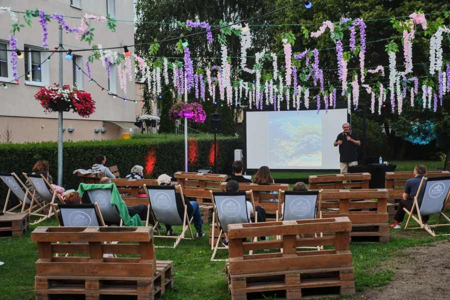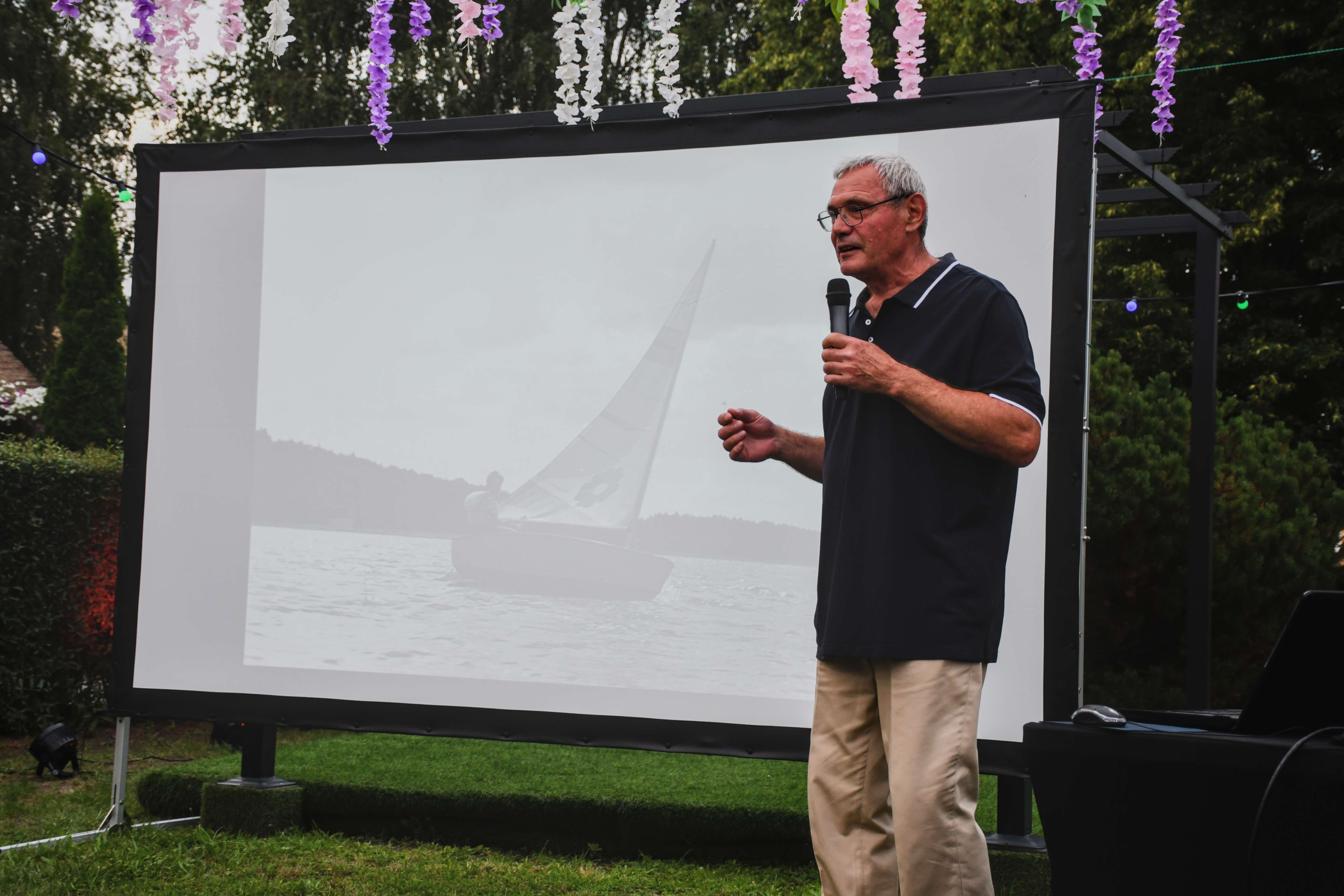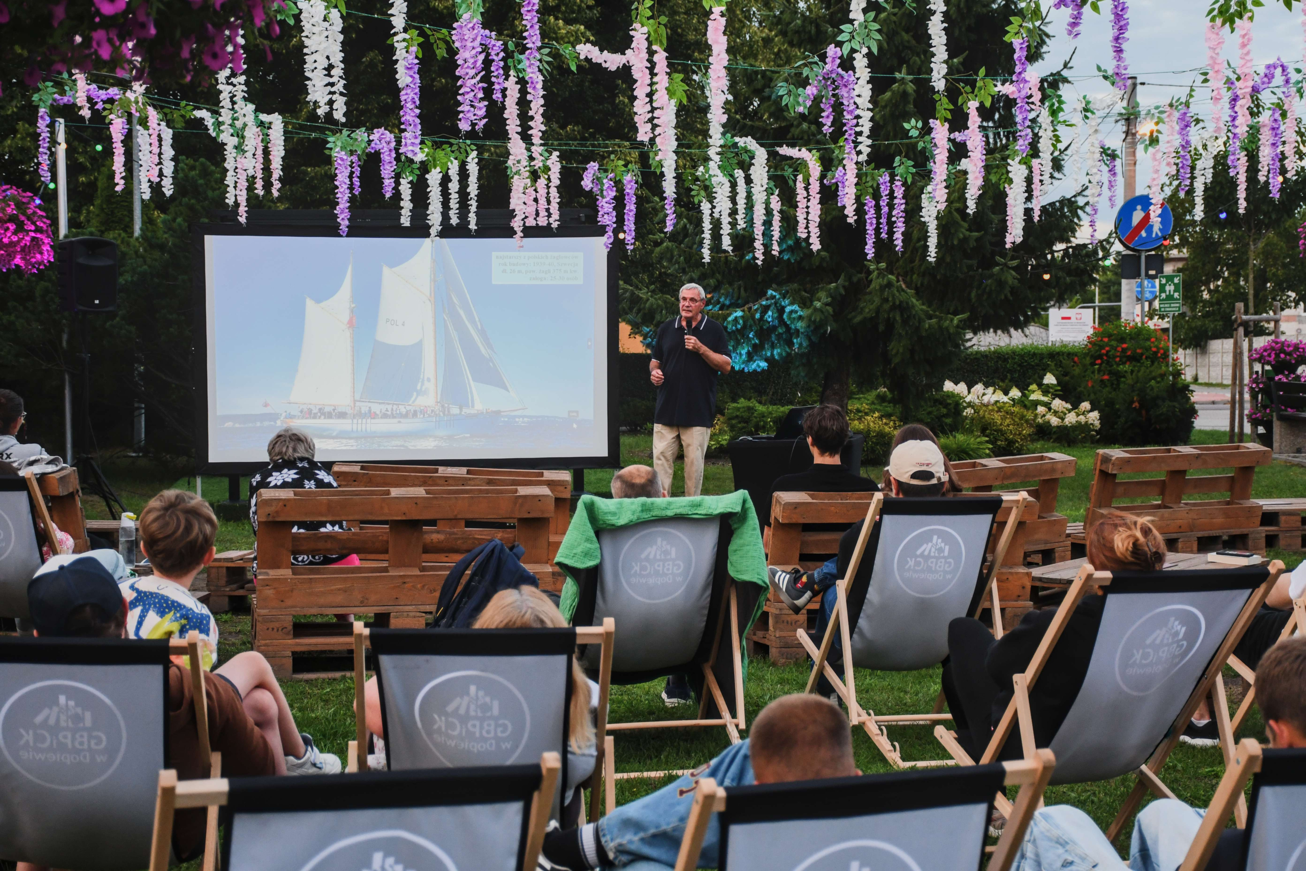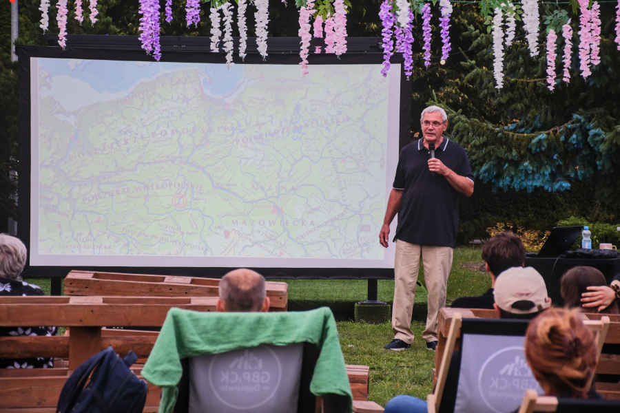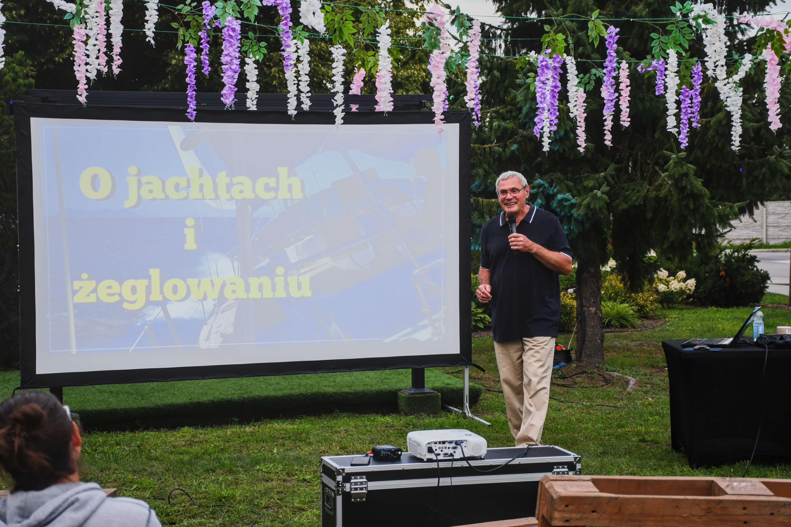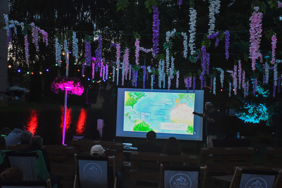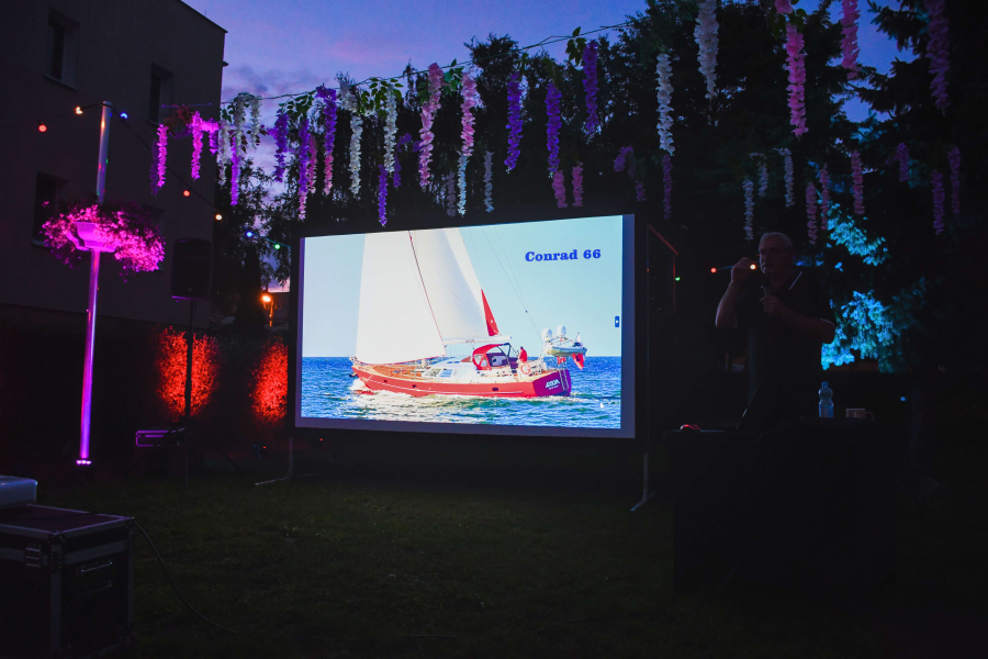 W ciepły, letni wieczór, w otoczeniu zieleni, goście mieli okazję posłuchać barwnych historii z życia na morzu. Kapitan Podgórski dzielił się wspomnieniami z rejsów, opowiadał o codzienności na jachcie, trudach żeglarskiego życia, a także o niezwykłych miejscach, do których doprowadziły go fale.