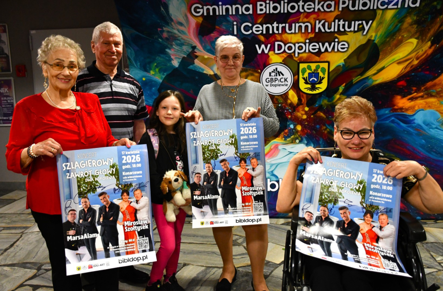 W piątkowy wieczór 17 kwietnia sala widowiskowa w Konarzewie wypełniła się muzyką, emocjami i świetną energią. Na scenie zaprezentowali się Mirosław Szołtysek z żoną – legenda śląskich szlagierów, której nie trzeba nikomu przedstawiać. Nie zabrakło również energii i świeżego brzmienia dwóch młodych muzyków z zespołu MarsaAlam. Publiczność miała okazję usłyszeć największe szlagiery i spędzić czas w pełnej energii atmosferze. Nie zabrakło także wspólnego śpiewania, a nawet tańca.
