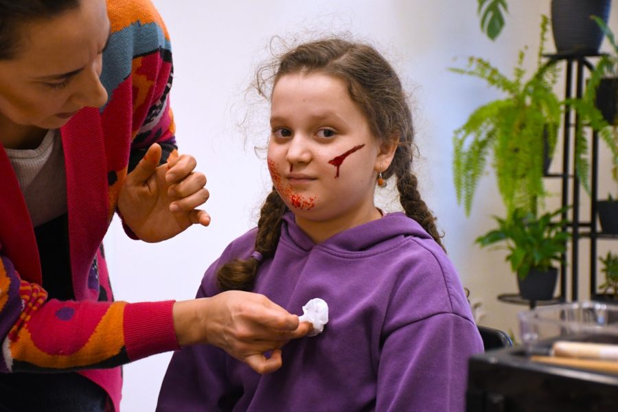Uczestnicy pracowali na specjalistycznych materiałach i kosmetykach scenicznych. Ćwiczyli malowanie twarzy, tworzyli efekty specjalne – m.in. rany i zadrapania z użyciem sztucznej krwi – a także poznawali tajniki zakładania i stylizacji peruk oraz pracy z rekwizytami charakteryzacyjnymi.