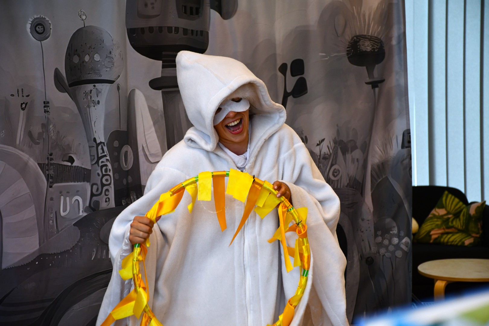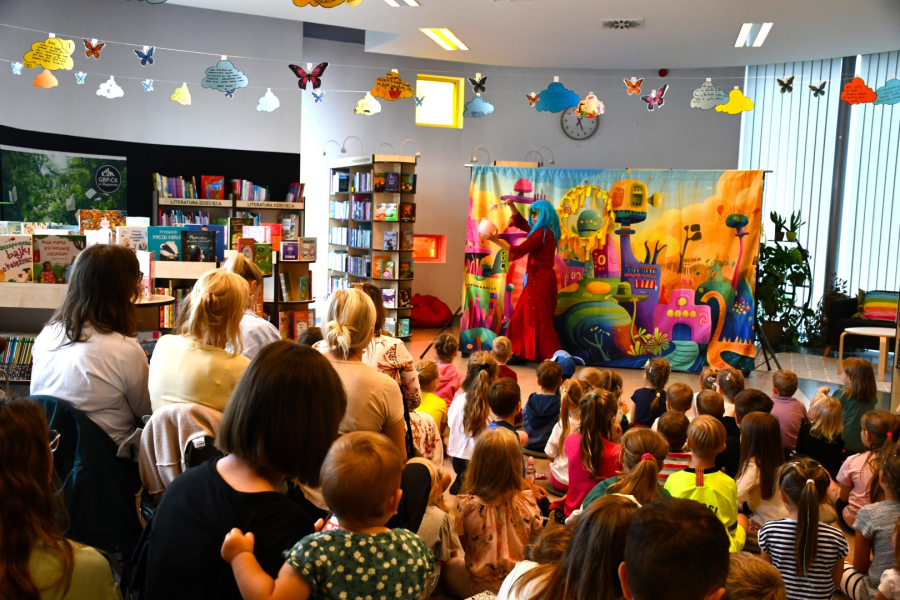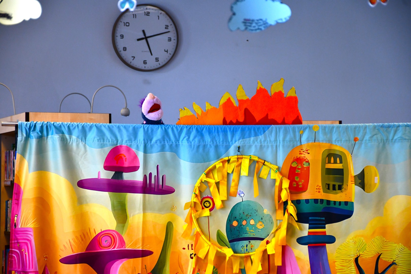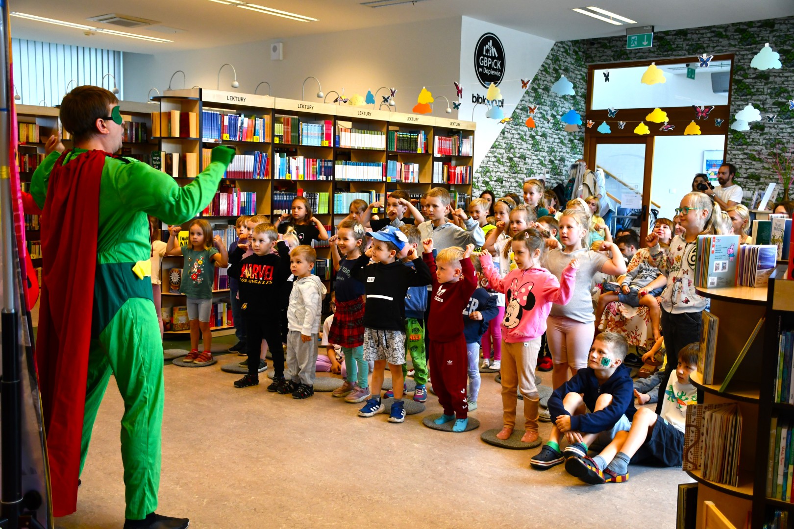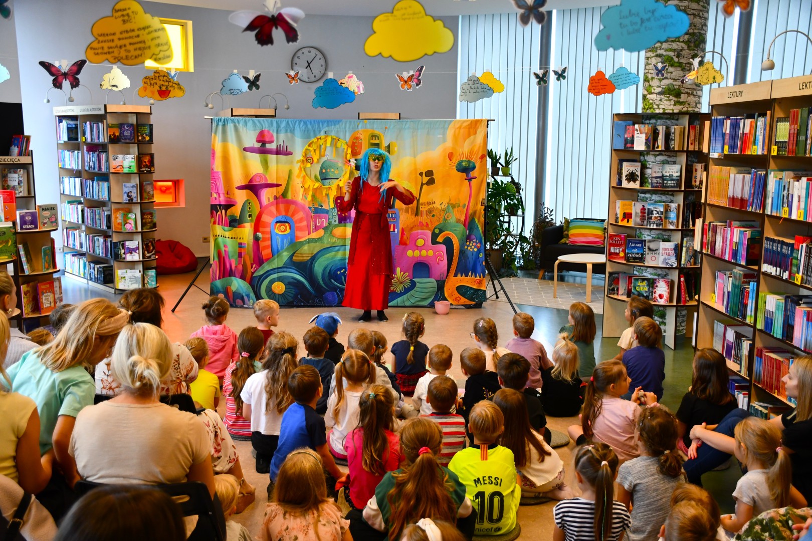 W środowe popołudnie, 23 lipca 2025 roku, filia biblioteczna w Dąbrówce zamieniła się w prawdziwą scenę teatralną. Wszystko za sprawą Teatru Kurtynka, który zaprezentował pełen barw, energii i wartości edukacyjnych spektakl dla dzieci pt. „Witaminowy SuperBohater”. Pierwotnie spektakl miał odbyć się w plenerze, ale deszczowa aura 🌧🌧🌧 pokrzyżowała nasze plany.